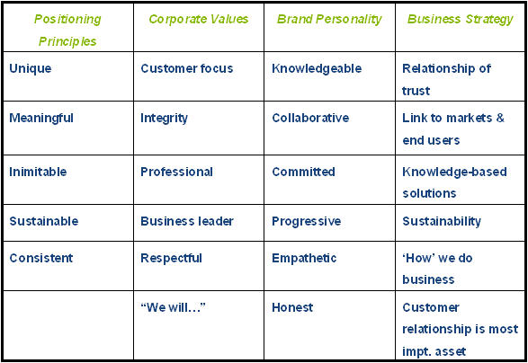 When developing or redeveloping  a brand positioning for your company the following example of a brand positioning filter table could be of value: